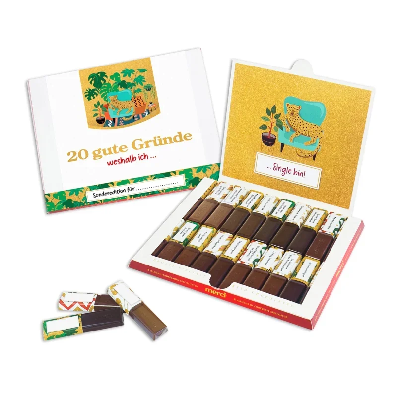 Weißt du, manchmal brauchen Singles einfach eine kleine Aufmunterung – oder einen Grund, ihr freies Leben so richtig zu feiern. Und was könnte besser passen als Schokolade mit einer ordentlichen Portion Humor?